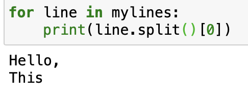 그런데 readlines가 뭐가 좋냐면 split해서 더 잘게 볼 수 있다는 점이 있어요. 예를 들어서 위의 명령어만 치면 아래처럼 나오지만,