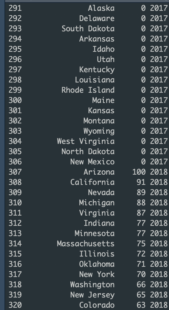 이제 이 파일을 통합해봅니다. 제 데이터는 앞에서 말씀드린 것처럼 각 파일이 동일한 이름의 칼럼을 갖고 있어서 join 같은 함수가 아니라 그냥 열만 더하는 rbind() 함수를 사용하면 됩니다. 다시 말해 google_2012.csv라는 파일은 "state", "googletrends", "year" 3개 열을 갖고 있는데 google_2013, google_2014도 다 동일한 칼럼만을 갖고 있음.