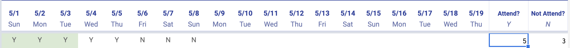 Attend 칼럼에는 (Y 몇 번 나왔는지 세라)
